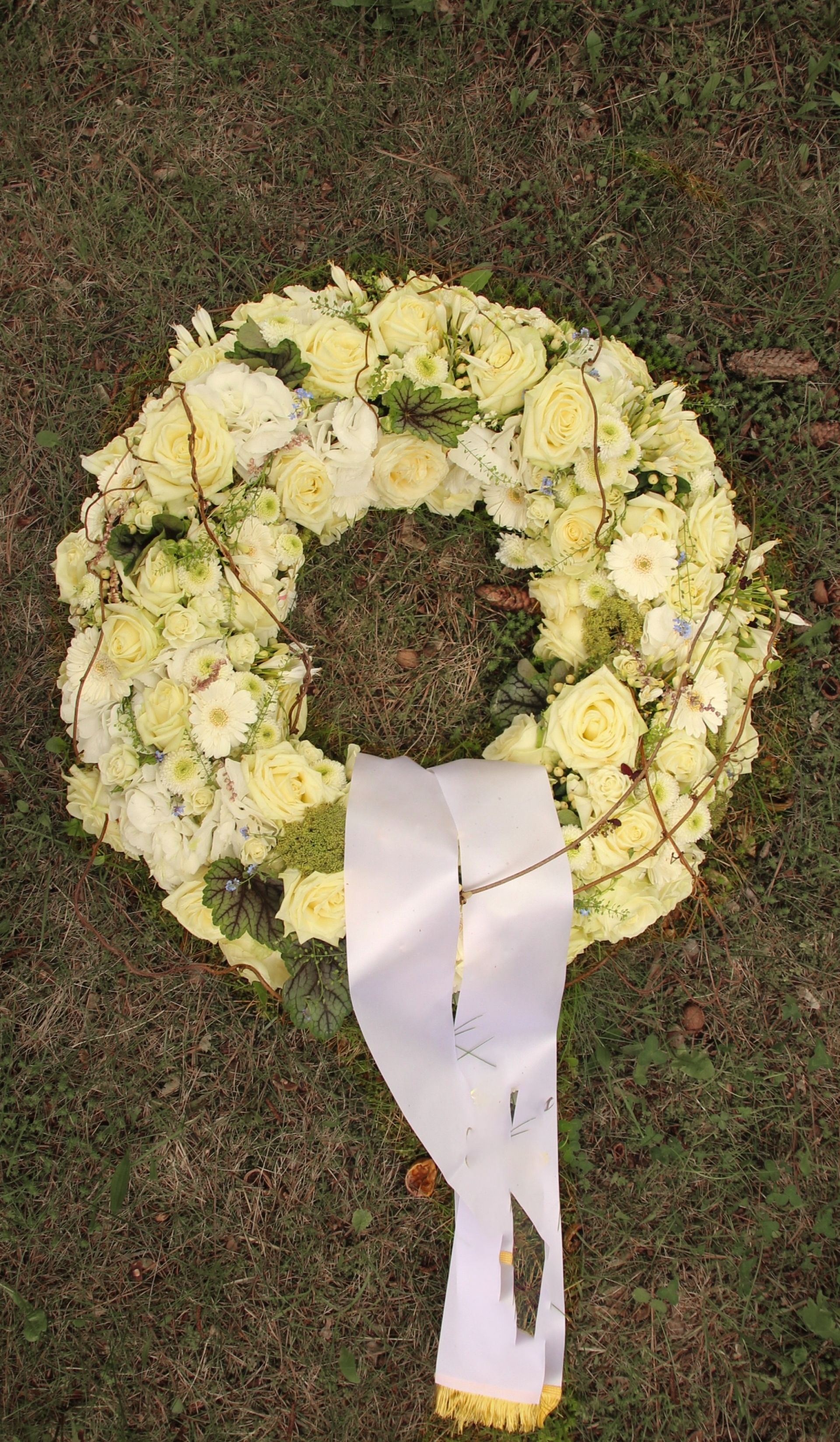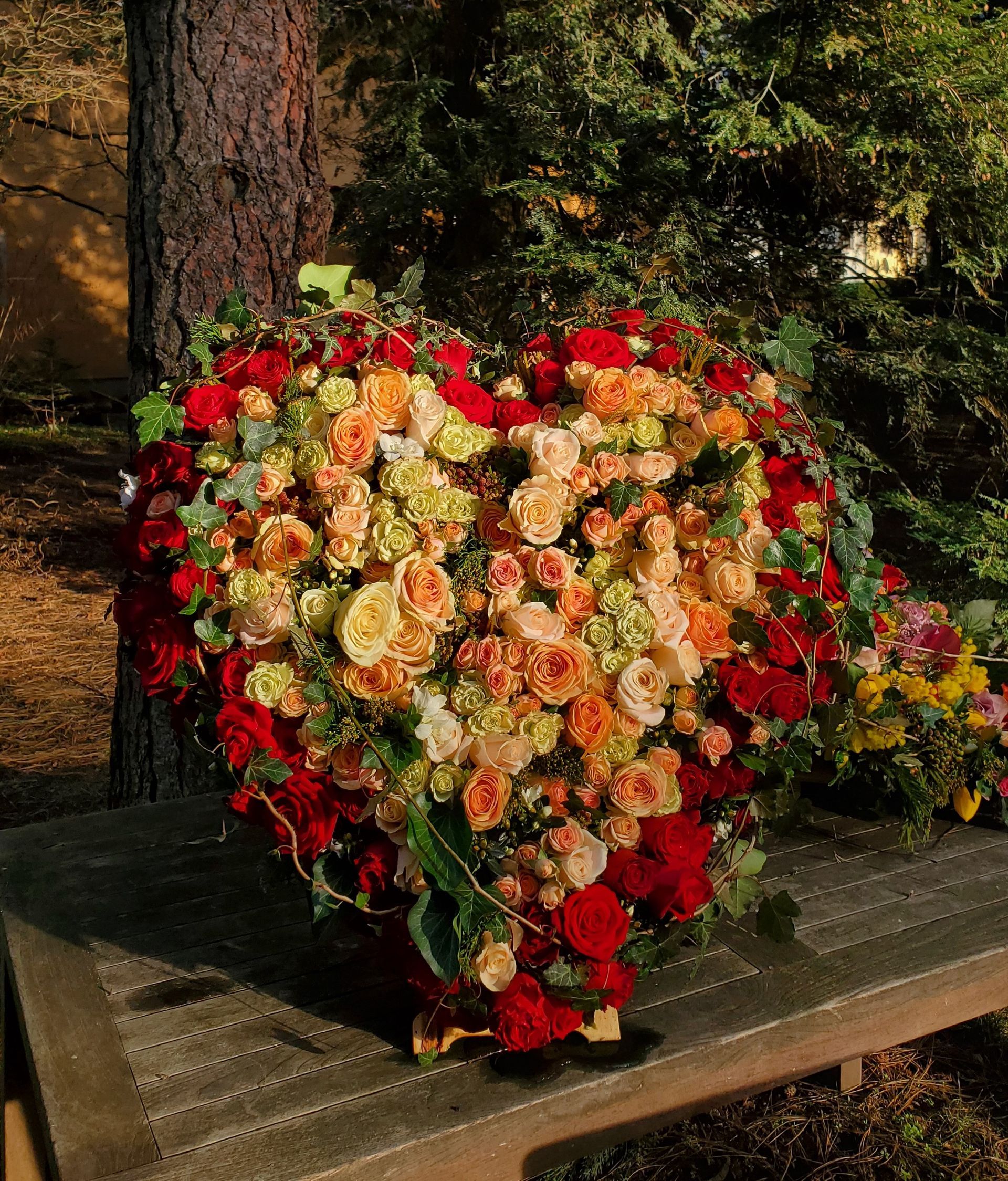Wir gestalten die Trauerfeier mit Kirchendekorationen, Urnenschmuck, Sargschmuck, Trauerkränzen, -gestecken und -sträußen. In einem persönlichen Gespräch beraten wir sie gerne und gestalten den Anlass ganz individuell nach ihren Wünschen.